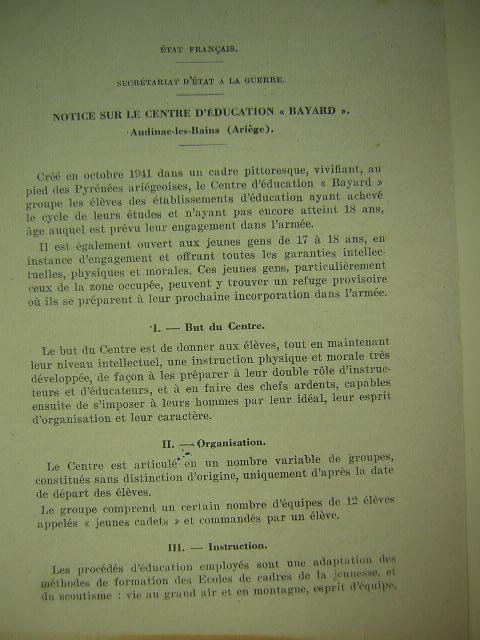 Créé en octobre 1941 pour des jeunes de 17 à 18 ans des écoles militaires préparatoires en vue d'un engagement dans l'armée. Après l'occupation de la zone Sud par les Allemands, plusieurs (60) d'entre eux franchirent les Pyrénées pour rejoindre les Alliés. D'autres, en juin 1944, rejoignent le maquis de la Crouzette... 22 d'entre eux seront déportés, fusillés ou tués dans les combats des maquis ou de la Libération (dont le plus connu provenant du centre d'Audinac est Pierre Ruibet: voir, plus bas à "Célébrités")