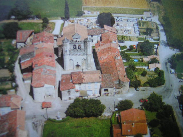 "En 1945: Les quatre tours sont décapitées. Deux à l'est, tout à fait indiscernables. Les deux autres, à l'ouest, aux trois quarts démolies, montrent encore leur ventre avec leurs meurtrières, leurs trous de couleuvrine. Les murailles, maintenant percées à jour, éclairent des maisons encloses dans le rectangle qui regardent l'église. Au sud, le presbytère et un ancien couvent. A l'est, la grande muraille de l'église. Ses deux fenêtres, très hautes et étroites, contemplent le cimetière où veillent deux cyprès et deux ifs en forme d'urnes funéraires au-dessus de la grande dalle d'une tombe."