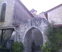 La bastide formait une enceinte en carré long, avec une placette au milieu, sur laquelle se dressera la façade fortifiée de léglise. Les quatre angles étaient défendus par une tour ronde et deux portes, dont lune montre encore son ogive à langle nord-est