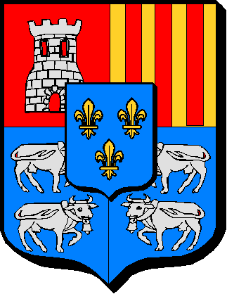 d'azur à 2 vaches, posées l'une sur l'autre, alésée, la tête tournée vers le